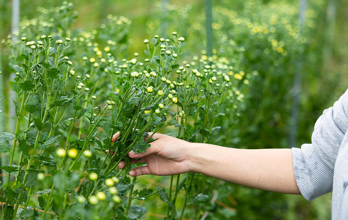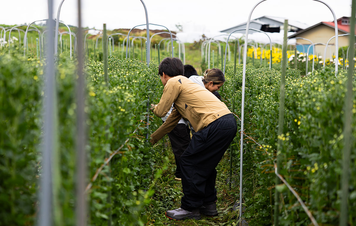 九戸村では、中規模農家や大規模農家がさらなる収益アップを目指し、栽培面積の拡大と作物の多角化などに取り組んでいるが、ネックとなっているのが深刻な人手不足だ。高齢化に伴う生産者の減少が進んでおり、新規就農者を増やしていくためにも、参入しやすく働きやすい環境整備が欠かせない。いわて農業未来プロジェクトでは、有機栽培のトマト農家には肥料散布を効率的に行える「ブレンドソーワ」を、りんどうや小菊を栽培する花き農家にはネットの支柱を土中に打ち込む「自動杭打機」と「自動定植機」の導入を支援。農作業の省力化・効率化によって、他の作業に時間を割けるようになり、品質の向上にもつながっているという。九戸村は、高収益が望める作物に加え、作業の機械化を進めることで、新たな担い手の確保と持続可能な農業の実現を目指していく。