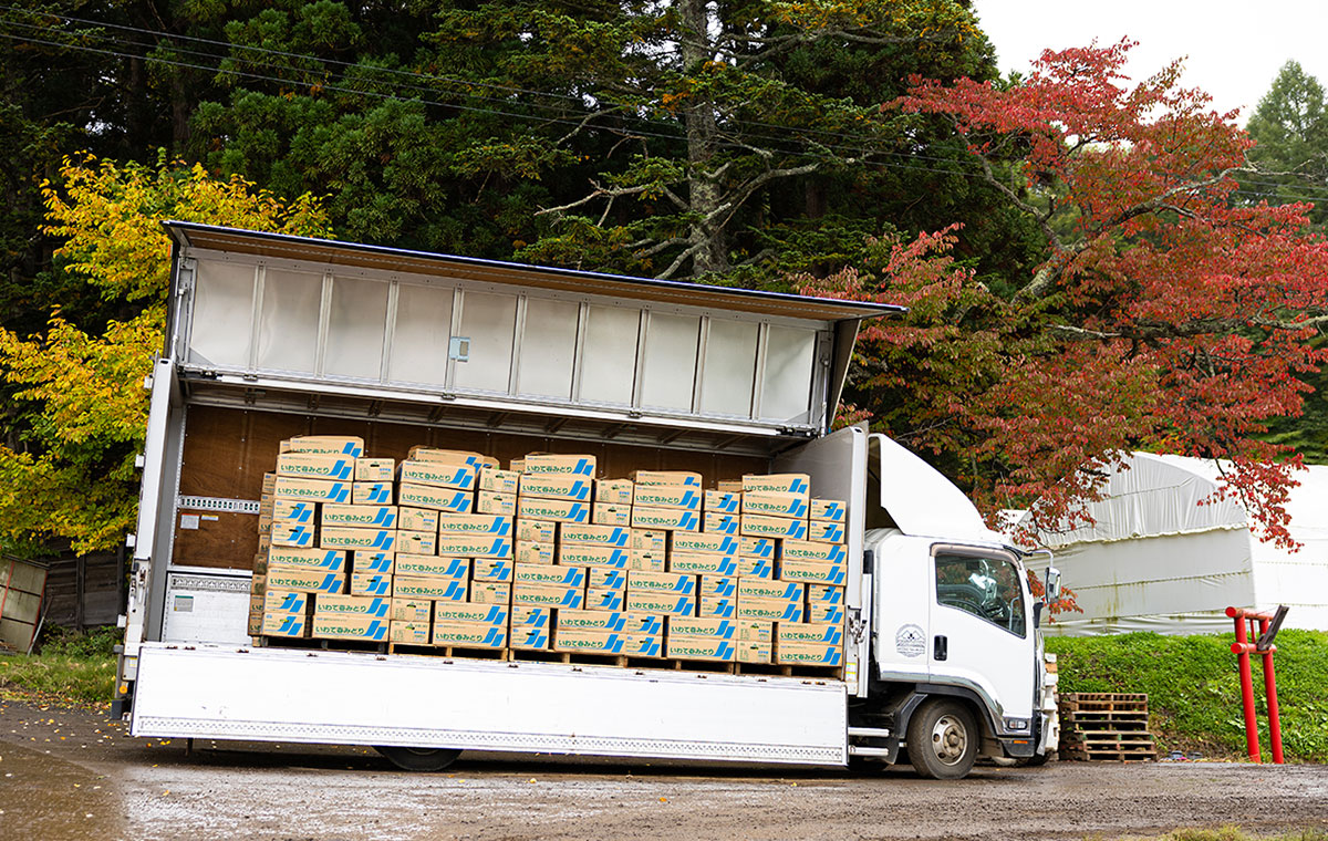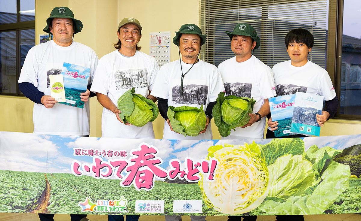 岩手町では、標高の高い山間部を中心に、昼夜の寒暖差を利用してキャベツ栽培が行われている。しかし近年、生産者を悩ませているのが、高温障害や干ばつ・豪雨、鹿などによる獣害だ。そもそも春みどりは栽培が難しい品種であり、加えて24〜25℃の適温をはるかに超える猛暑が生育を阻む。干ばつで苗が枯れたり、水不足で支障が出るなど、畑の管理が難しい状況にあるためPRには手が回らないという。そこで、いわて農業未来プロジェクトでは、高温・乾燥から守るスキーポンの導入支援と、「いわて春みどり」の認知度向上を図るブランディングプロジェクトをスタート。首都圏向けラッピングトラックを用意し実走させるだけでなく、店頭販売などで着用するTシャツ&帽子や販促用グッズも制作してきた。また、首都圏小売店でのPR企画も実施し、首都圏のバイヤーとの関係性再構築や強化をサポートしている。